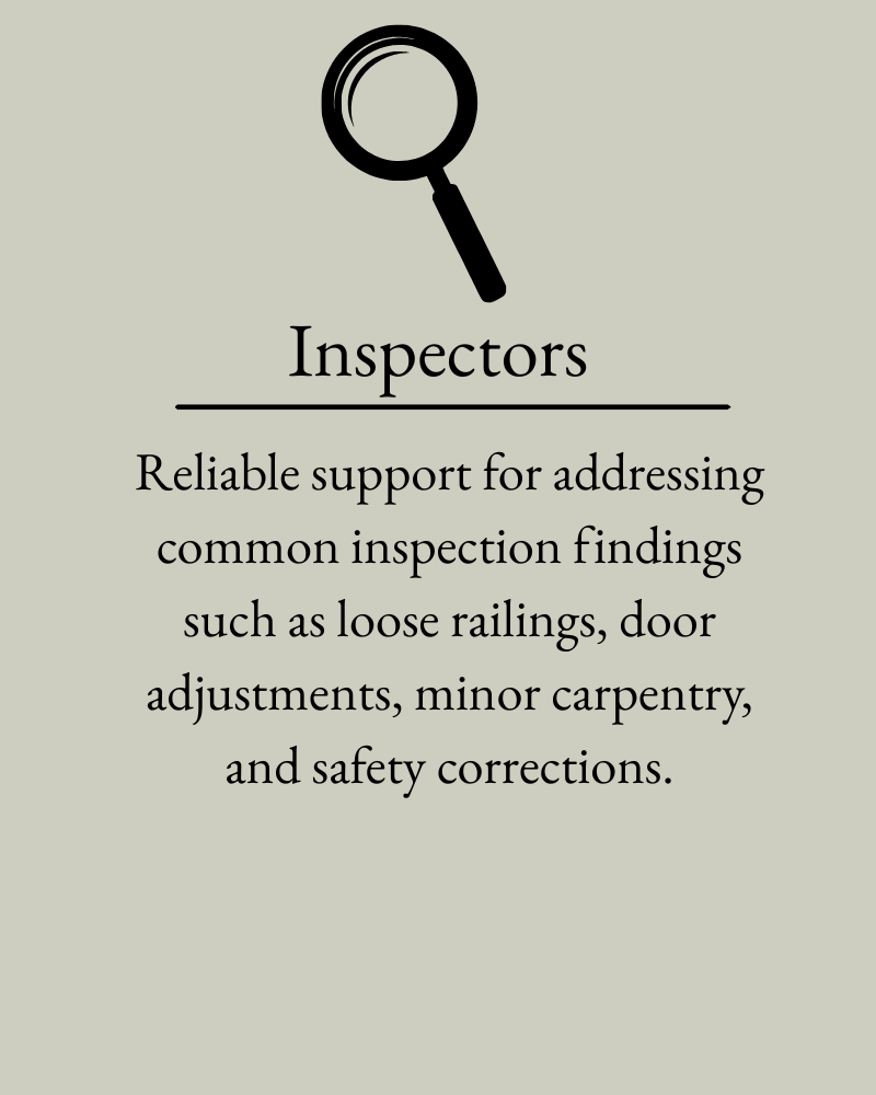 If you need reliable support for inspection repairs, rental maintenance, or small commercial projects, Laurel & Pine provides dependable service and clear communication.